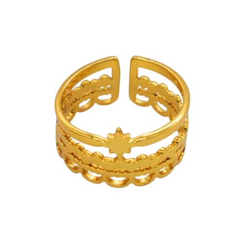 Generic - Stainless Steel Openwork Design Women's Ring, Free Size - Gold FA368