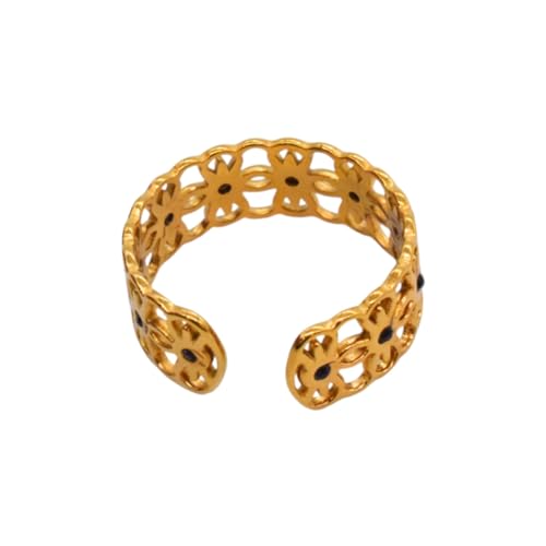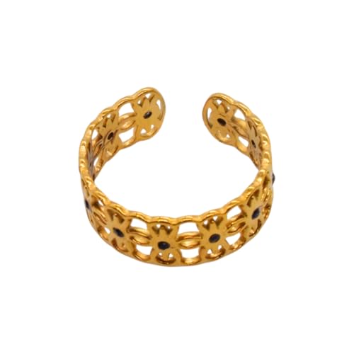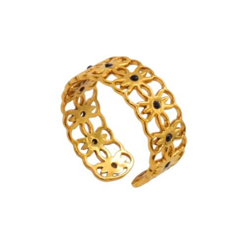 Generic - خاتم للنساء بتصميم زهور مخرمة من الستانلس ستيل، مقاس واحد - ذهبي