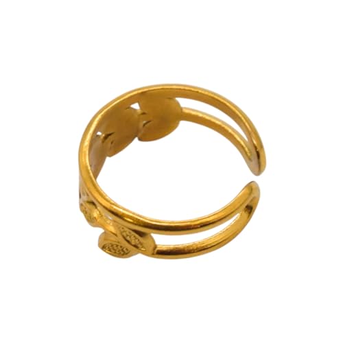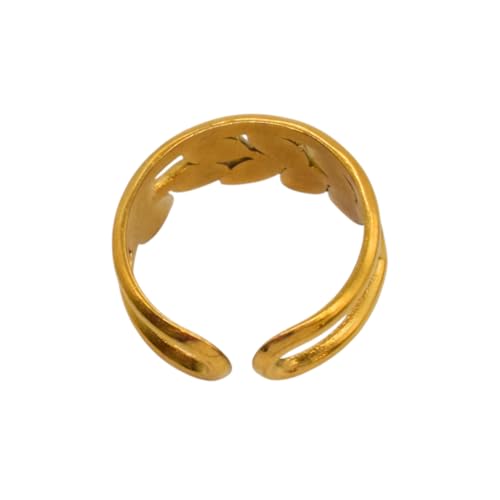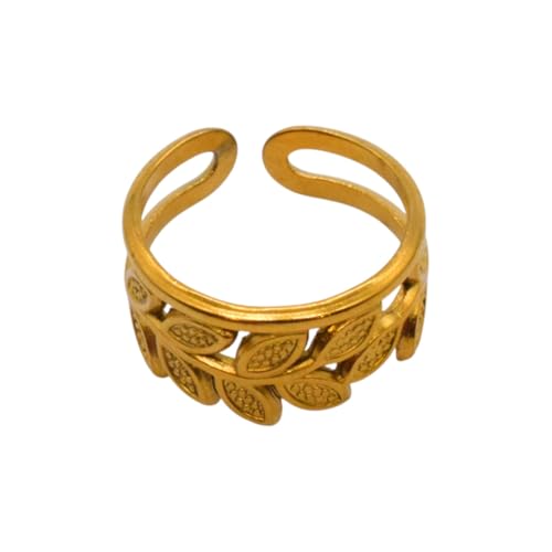Generic - خاتم للنساء من الستانلس ستيل بتصميم اوراق الغار، مقاس واحد - ذهبي