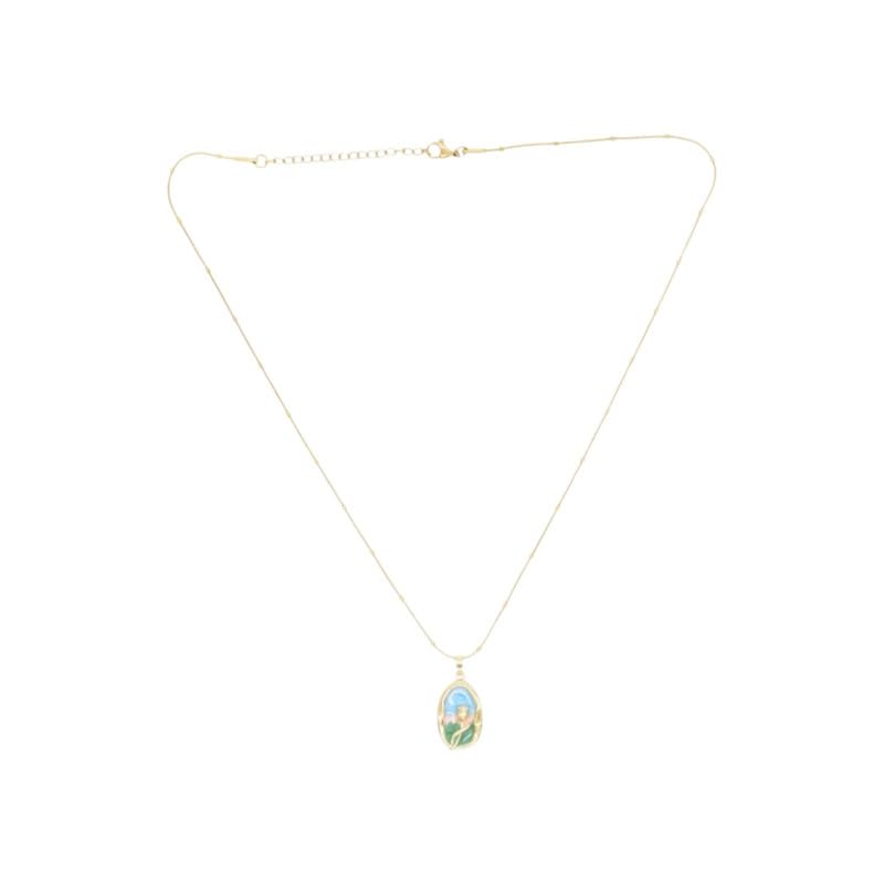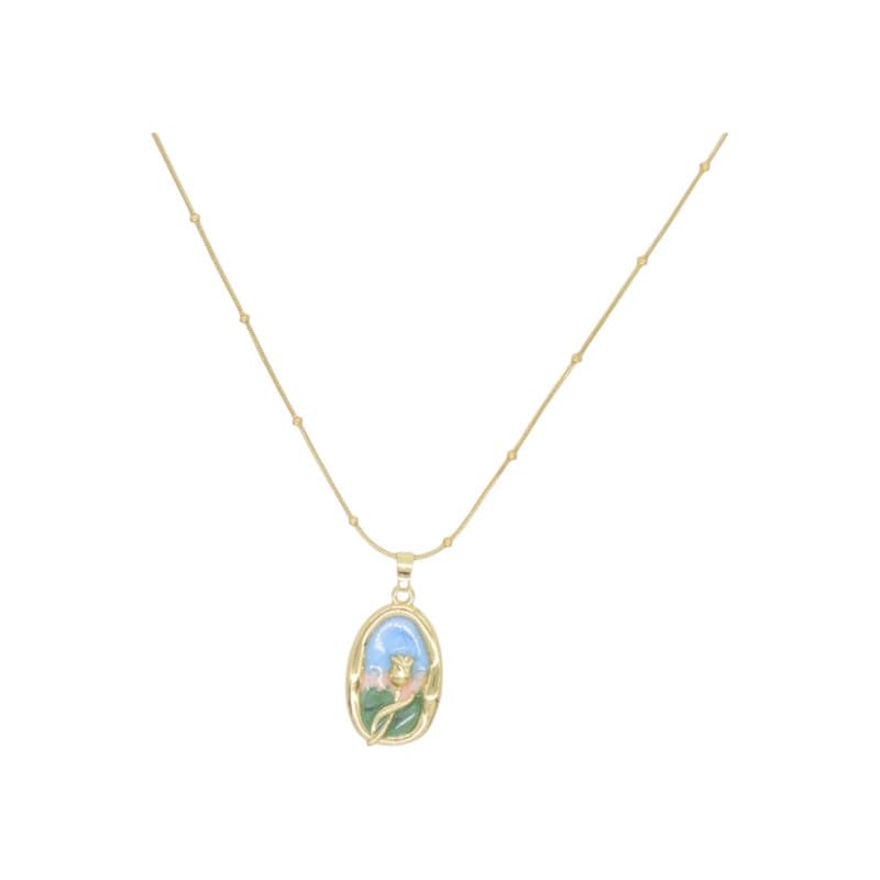 Generic - Stainless Steel Oval Deer Landscape Pendant Necklace for Women - Gold Blue