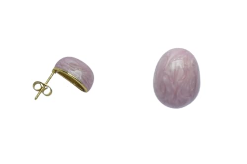 Generic - Stainless Steel Oval Stud Earrings with Marbled Enamel for Women