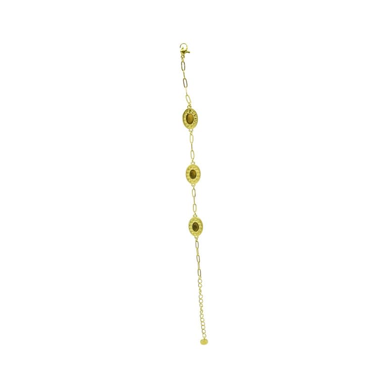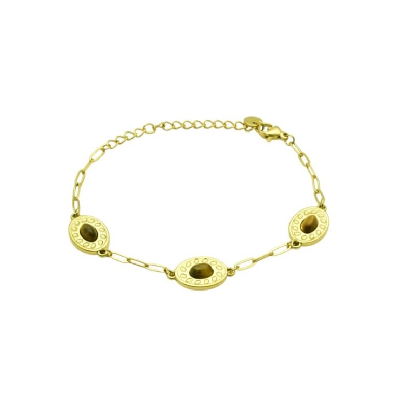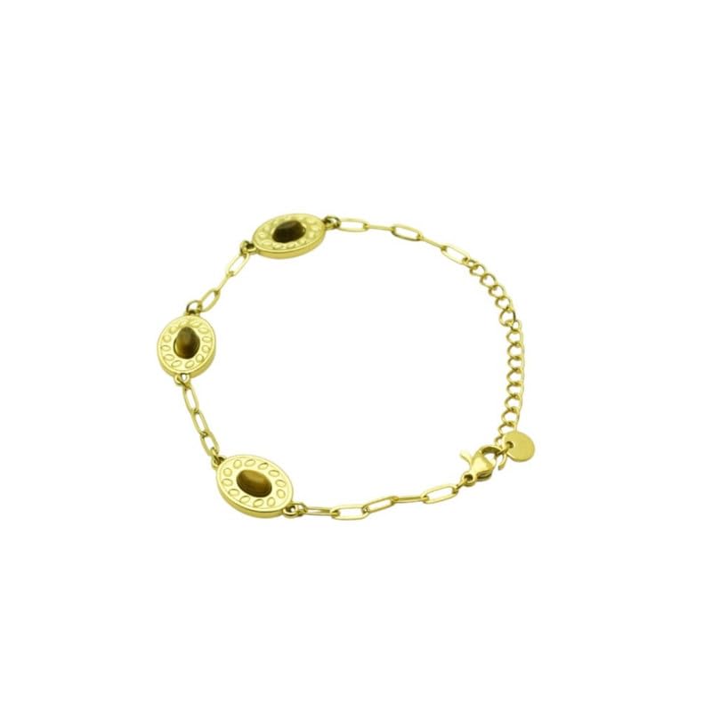 Generic - سوار سلسلة بمشبك ورق من الستانلس ستيل مع ثلاث دلايات بيضاوية للنساء - ذهبي
