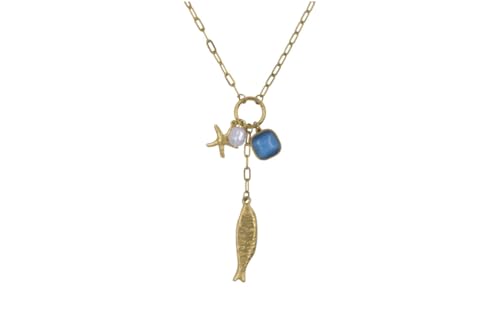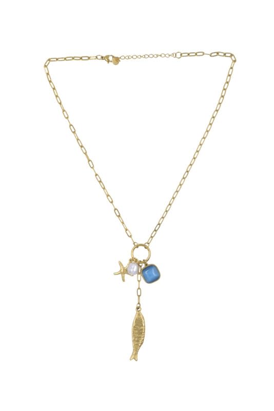Generic - Stainless Steel Paperclip Chain Necklace with Starfish, Pearl & Fish Charms for Women - Gold