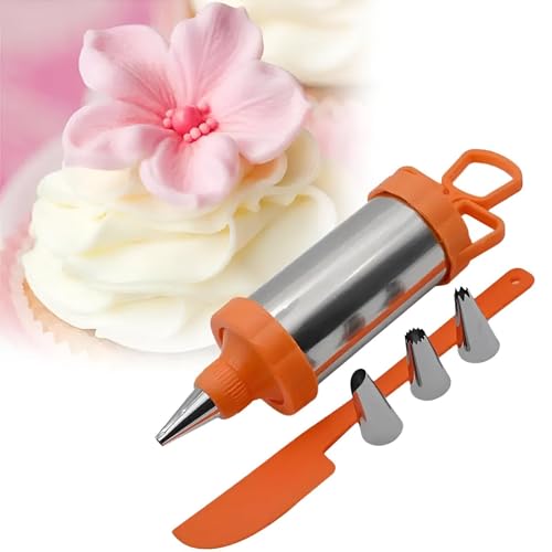 Generic - مسدس معجنات من الفولاذ المقاوم للصدأ – مجموعة أدوات خبز أساسية تضم محقنة كريمة وأربعة رؤوس مختلفة، مثالية لتزيين الكعك والبسكويت والمعجنات بسهولة وأناقة.