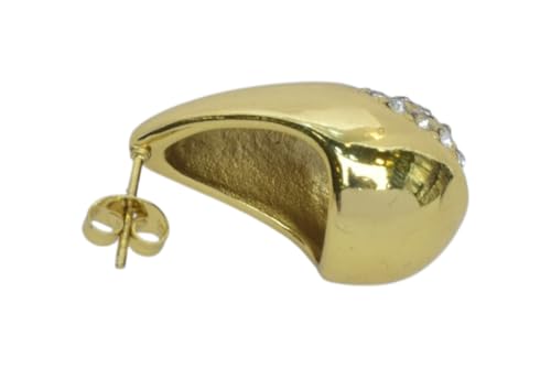 Generic - Stainless Steel Pave Crystal Teardrop Hoop Earrings for Women - Gold
