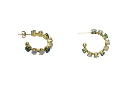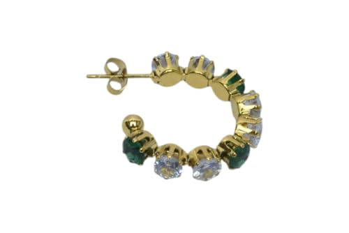 Generic - Stainless Steel Pave-Set Gemstone Huggie Earrings for Women - Gold