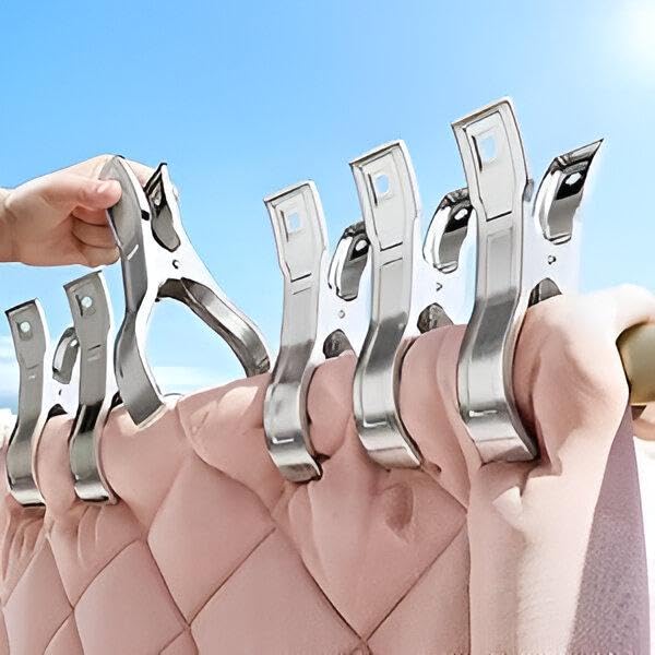 - هذه المشابك مصممة لتثبيت مجموعة متنوعة من الأغراض، فهى قوية بما يكفي لتثبيت أغطية اللحاف ومنعها من السقوط، بالإضافة إلى الملابس والفوط. بفضل فكّيها القويين والسوست القوية، توفر هذه المشابك تثبيتًا محكمًا، مما يجعلها متعددة الإستخدامات على نحو كبير لمختلف الإستخدامات.