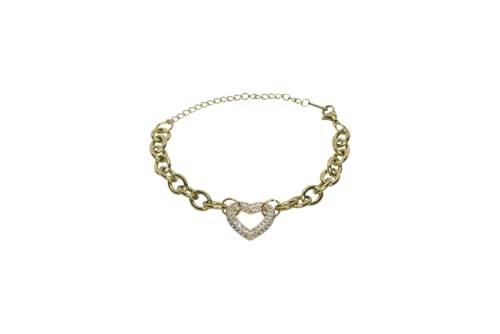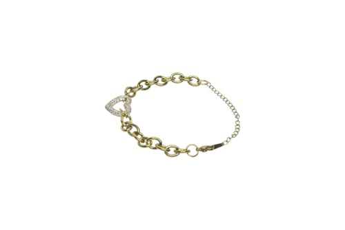 Generic - Stainless Steel & Platinum Pave Heart Chunky Rolo Chain Bracelet For Women - Gold