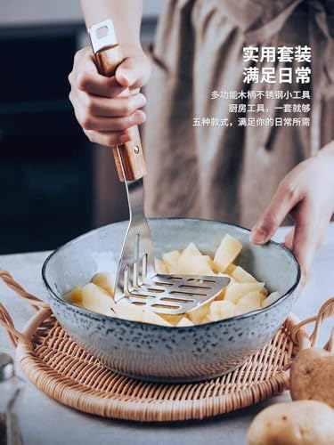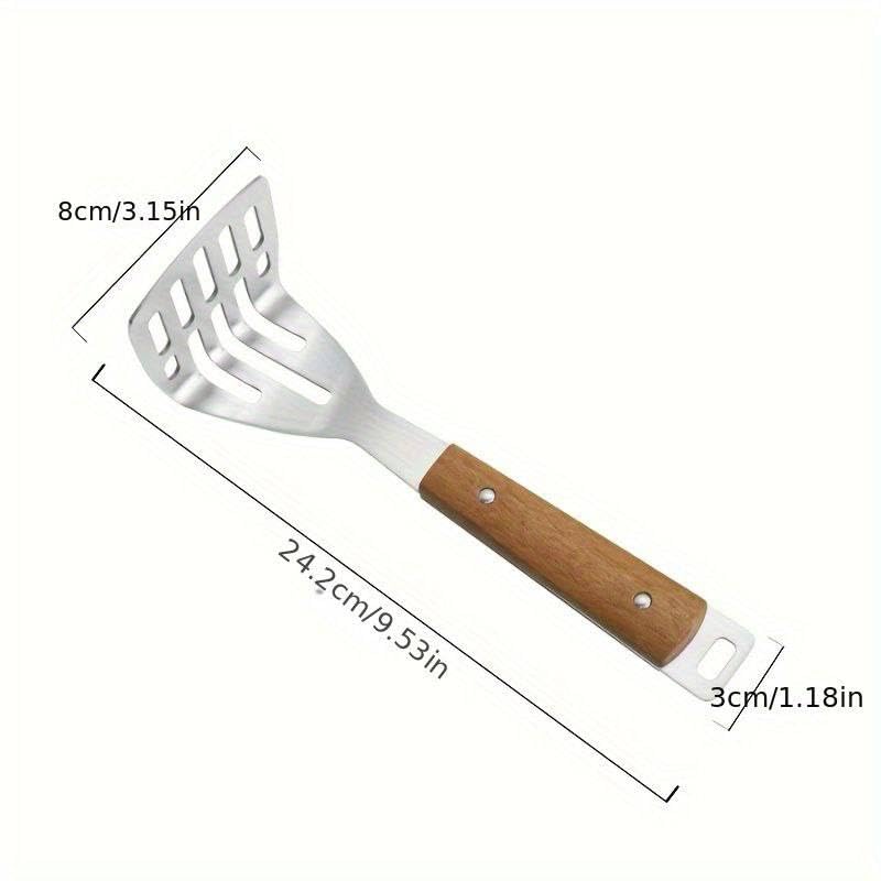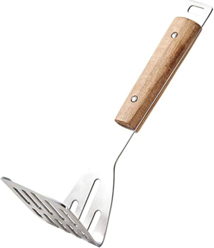 Generic - هراسة بطاطس من الفولاذ المقاوم للصدأ بمقبض خشبي - 24 سم - هرس سهل وسريع، ملعقة مسطحة للمطبخ