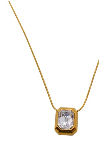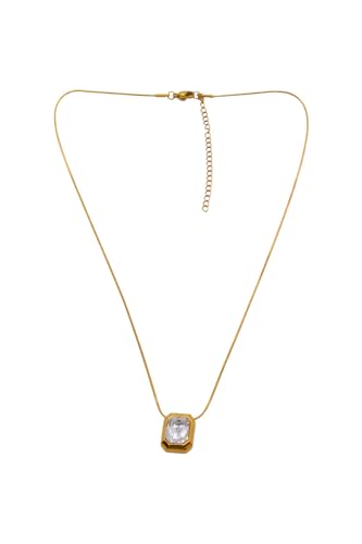 Generic - Stainless Steel Rectangular Gemstone Pendant Necklace For Women - Gold