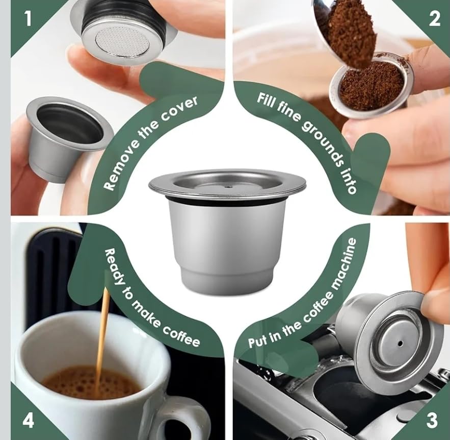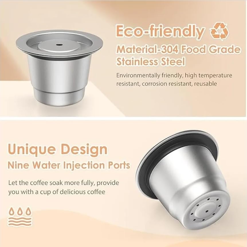 - ✅【Premium Food-Grade Stainless Steel】 Unlike plastic capsules that may release harmful substances when overheated, our refillable pod is made from high-quality, food-grade stainless steel—safe, durable, and odor-free. It preserves the pure taste of your coffee without contamination or strange flavors. Eco-friendly and built to last, it can be reused up to 10,000 times, helping you enjoy fresh, delicious coffee at home while reducing environmental waste.
