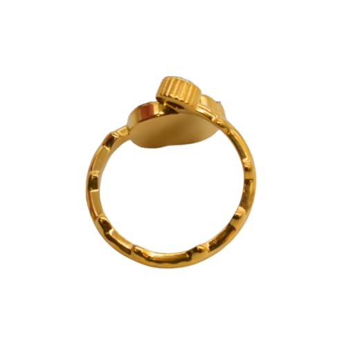 Generic - Stainless Steel Rhinestones Paved Rose Women's Ring, Free Size - Gold