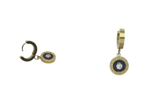 Generic - Stainless Steel Roman Numeral-Inspired Dangle Huggie Earrings for Women - Gold Black