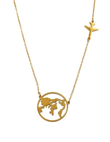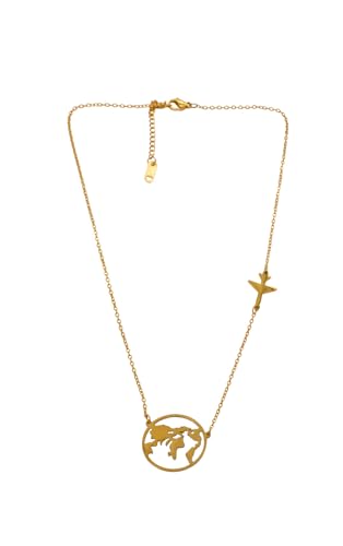 Generic - Stainless Steel Round Cutout World Map Pendant Necklace For Women - Gold FA488