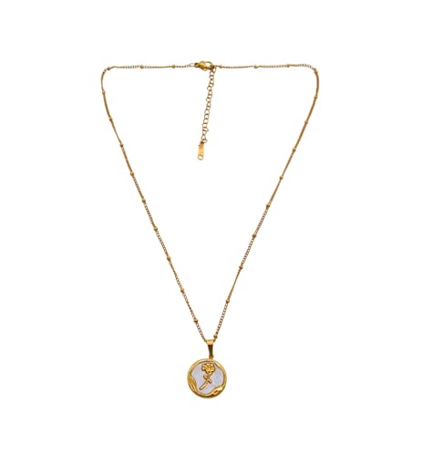 Generic - Stainless Steel Round Pearl Rose Pendant Necklace For Women - Gold