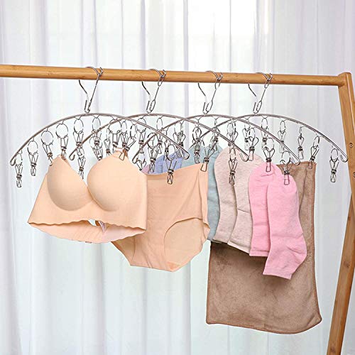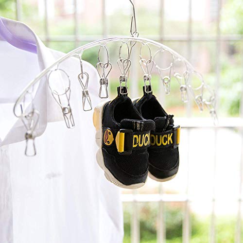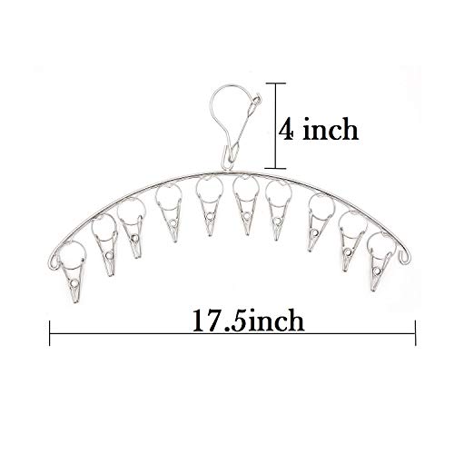 Lukzer - Stainless Steel Rustproof and Windproof Clothes Drying Rack with 10 Clips/Hooks for Hanging Baby Clothes, Socks, and Underwear (10 Clips) by Luxer, Multicolor