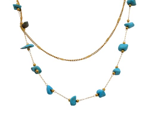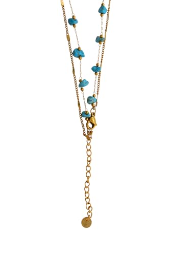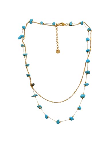 Generic - Stainless Steel Scattered Raw Blue Stone Double-Layered Necklace For Women - Gold