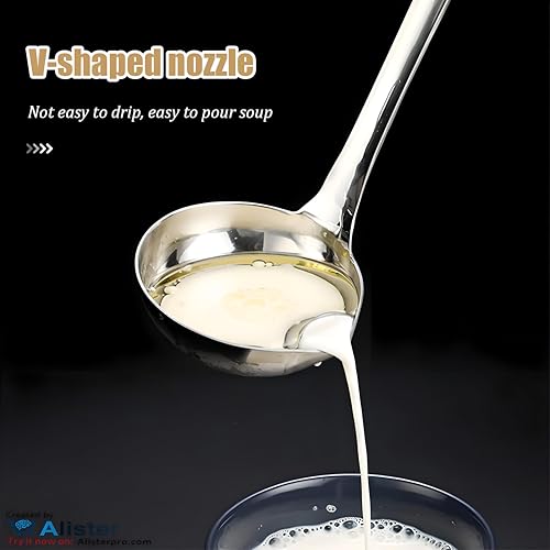 - تصميم ذكي لفصل الزيت: تتميز المغرفة بفتحة سفلية صغيرة تسمح للمرق بالتدفق أولاً بينما يبقى الزيت في الأعلى. تفصل هذه الآلية الذكية الشحوم بفاعلية، مما يمنحك حساءًا أخف وصحة ونقية.