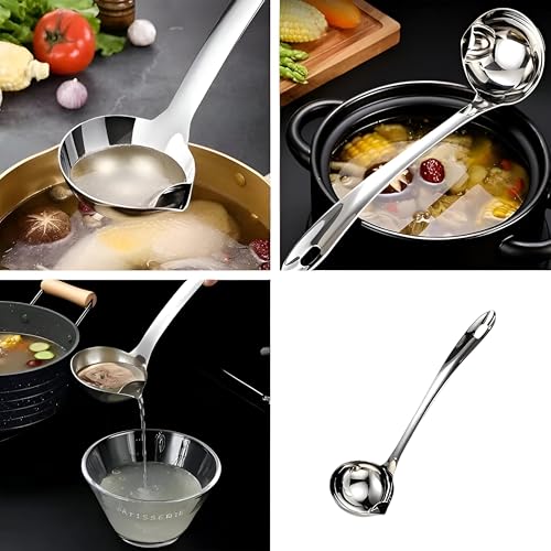 Generic - مغرفة وفصل الدهون من الستانلس ستيل بمقبض مريح، مصمم للمطبخ المنزلي، يساعدك على فصل الدهون بسهولة عن الحساء والصلصات وتسهيل التنظيف والطهي اليومي. (قطعة واحدة)