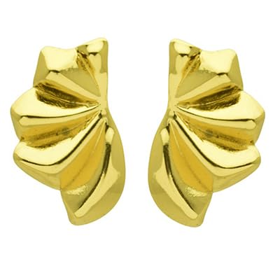 Generic - Stainless Steel Sculpted Fan & Wavy Edge Stud Earrings for Women – Gold