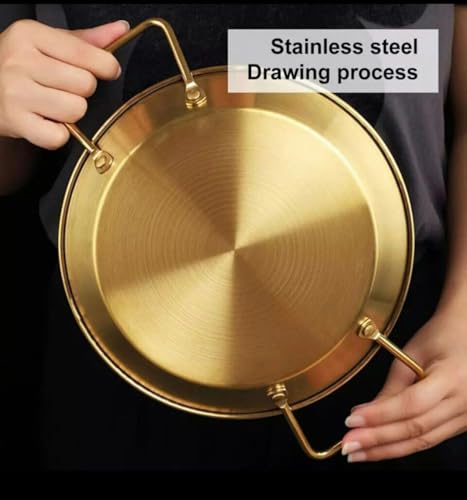 - STYLISH & DURABLE DESIGN: The gold round stainless steel pan adds a touch of luxury and elegance to serving, while ensuring durability and long-lasting use.