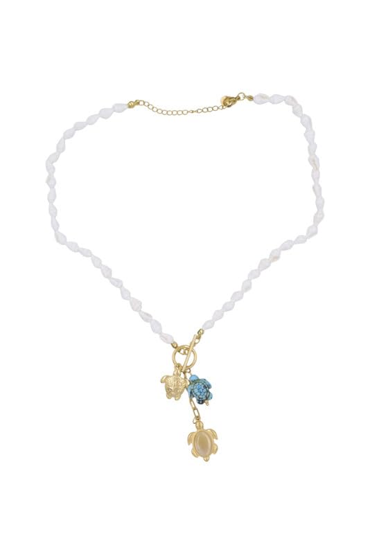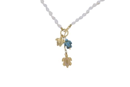 Generic - Stainless Steel Shell Chain Necklace with Sea Turtle Charms for Women - Gold