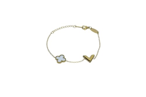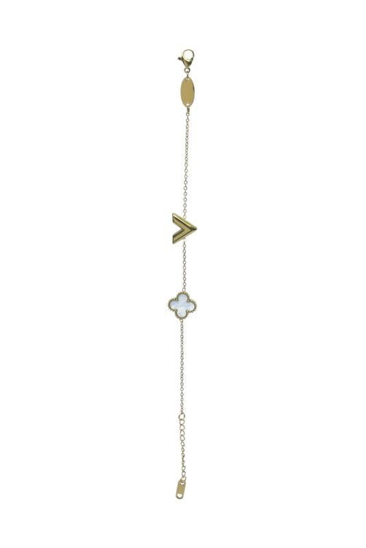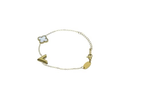 Generic - سوار بسيط من الفولاذ المقاوم للصدأ بتصميم زهرة البرسيم والحرف (V) للبنات - ذهبي وأبيض
