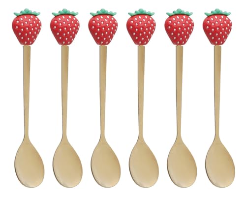 Generic - Stainless Steel Small Spoon Strawberry Shape Set Of 6 Pieces - Gold & Red