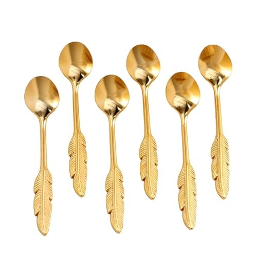 Generic - Stainless Steel Spoons - Set of 6 Elegant Dessert Spoons for Coffee, Tea, Ice Cream, Cake, Dessert, Spice, Bar Mixing Feather