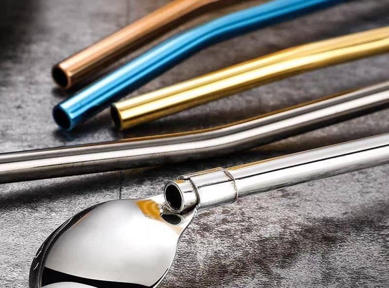 - Versatile: This set includes reusable metal straws in assorted colours, a cleaning brush, and a sturdy spoon for convenient sipping and stirring.