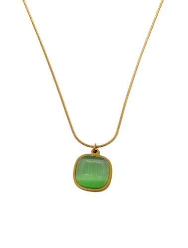 Generic - Stainless Steel Square Green Pendant Necklace For Women - Gold