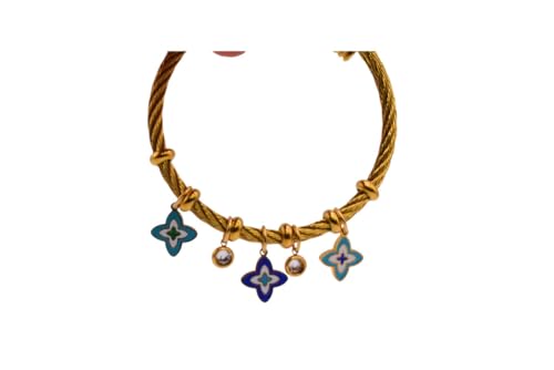 Generic - سوار بدلايات من الستانلس ستيل بتصميم خاص للبنات - ذهبي وازرق