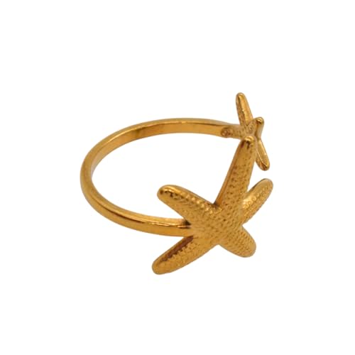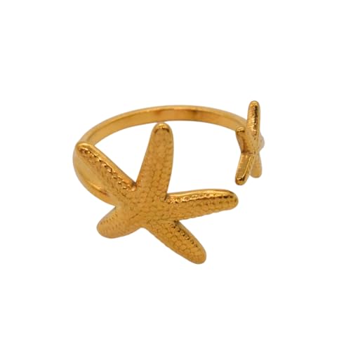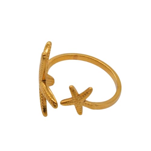 Generic - Stainless Steel Starfish Design Women's Ring, Free Size - Gold