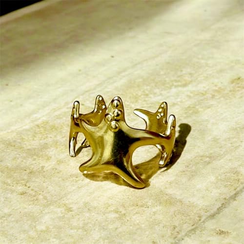 cherry accessories - خواتم مفتوحة من الستانلس ستيل على شكل نجوم ونجم البحر للنساء، خاتم هندسي بلون ذهبي