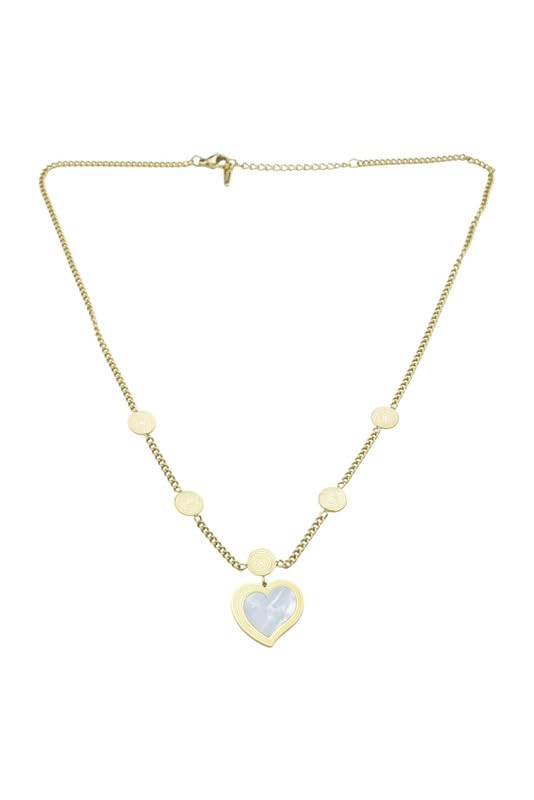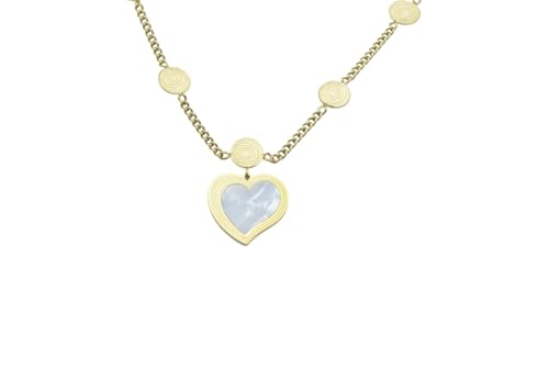 Generic - Stainless Steel Station Necklace with Heart & Spiral Charms for Women - Gold White