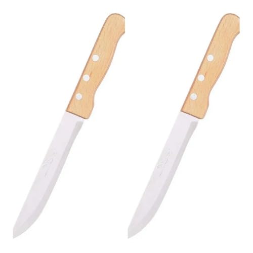 Generic - سكين ستيك من الستانلس ستيل بمقبض خشبي، مجموعة من قطعتين