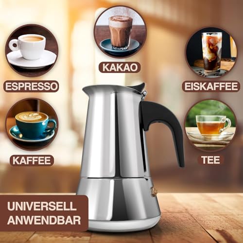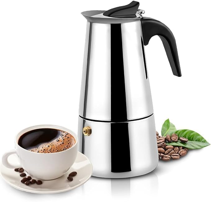 Generic - ماكينة تحضير الاسبريسو من الستانلس ستيل على الموقد، وعاء ضغط موكا بمقبض مقاوم للحرارة، صمام امان، تصميم ايطالي اصلي (ستة اكواب)