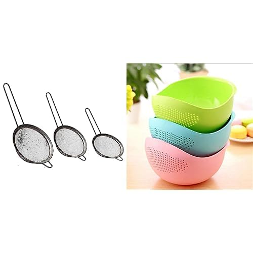 Generic - مجموعة مصفاة ستانلس ستيل من 3 قطع - بولة غسيل ومصفاة للأرز والفواكه والخضروات والمكرونة للتخزين والتصفية (22 × 18 × 12 سم)