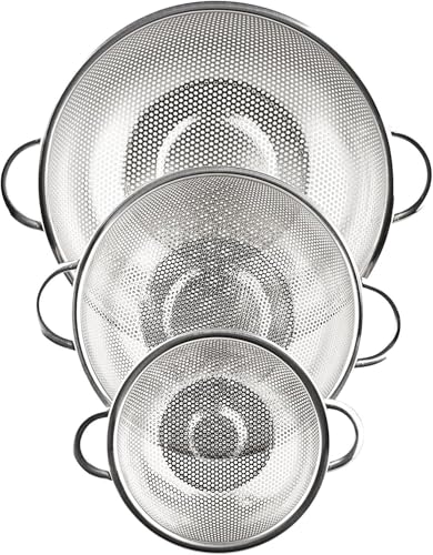 Generic - Stainless Steel Strainers Set of 3 Different Sizes – High Quality Rustproof Kitchen Strainers with Side Handles, Ideal for Washing Vegetables, Fruits, Pasta and Draining Water Quickly