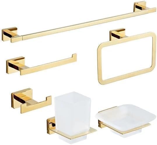 Generic - مجموعة اكسسوار الحمام من الستانلس ستيل SUS304 المقاوم للصدا ((((طقم ذهبي 6 قطع))))