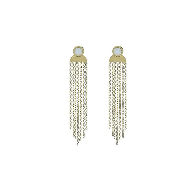 Generic - Stainless Steel Tassel Dangle Earrings With Inlay For Women, 2 Pieces - Gold
