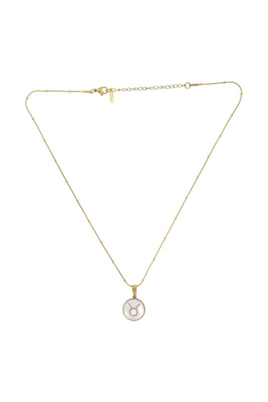 Generic - Stainless Steel Taurus Zodiac Pendant Beaded Chain Necklace for Women - Gold