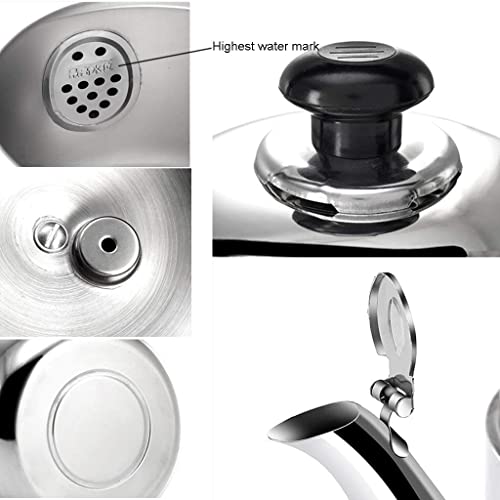 - HIGH QUALITY & EFFECIENT: This whistling teapot is made of 304 stainless steel which heats up quickly and evenly. That means less waiting and a more efficient tea or coffee making experience for you! Can be used on stovetops such as gas, electric, glass ceramic, induction, halogen and more.