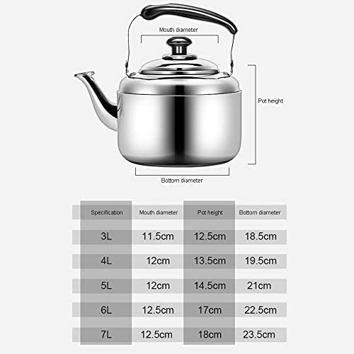 MFHJJRT - Stainless Steel Tea Kettle, Whistling Stove with Teapot Hotness with Handle Technology Surgical Stainless Steel, Compatible on all stovetops - Induction or Gas, 7L (6L)