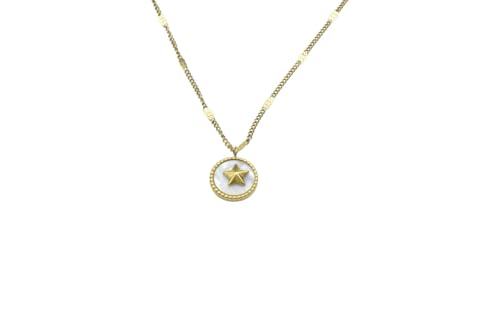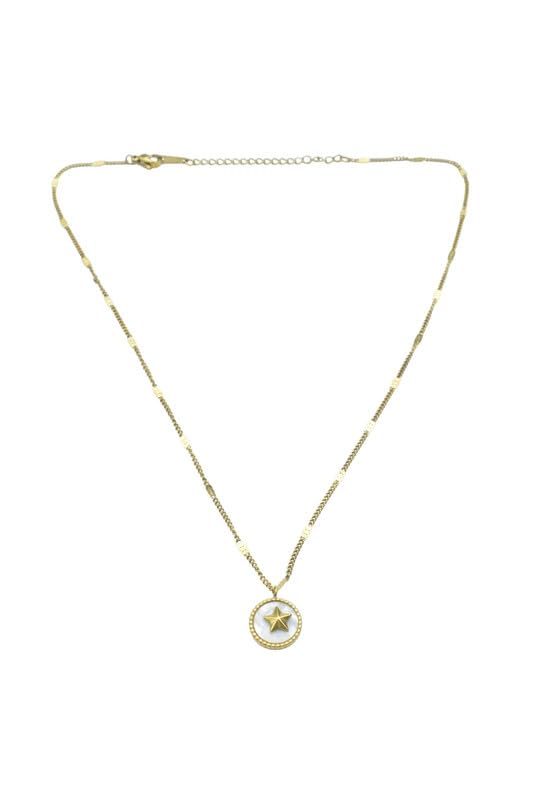 Generic - Stainless Steel Textured Chain Necklace with Star & Mother-of-Pearl Pendant for Women - Gold