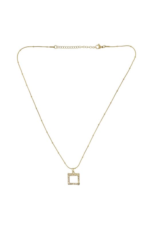 Generic - Stainless Steel Textured Square Pendant Necklace for Women - Gold