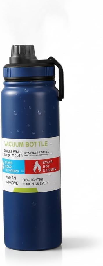 Generic - زجاجة حرارية من الستانلس ستيل، معزولة بتفريغ الهواء، سعة 1000 مل، مانعة للتسرب، خالية من BPA، زجاجة رياضية للحفاظ على الماء ساخنا او باردا، مثالية للقهوة والشاي والسفر، سعة 1 لتر (ازرق)