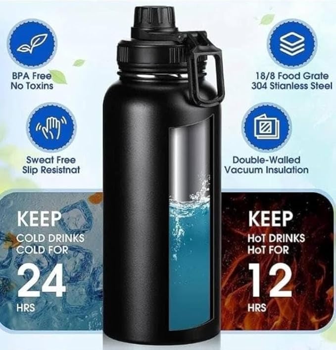 - سعة كبيرة: هذه الزجاجة المصنوعة من الستانلس ستيل المعزول بتفريغ الهواء بسعة 1000 مل مثالية لحمل المشروبات الساخنة أو الباردة أثناء التنقل.