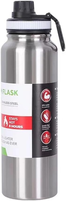 Generic - زجاجة حرارية من الستانلس ستيل، معزولة بتفريغ الهواء، سعة 1000 مل، مانعة للتسرب، خالية من BPA، زجاجة رياضية للحفاظ على الماء ساخنا او باردا، مثالية للقهوة والشاي والسفر، سعة 1 لتر (فضي)