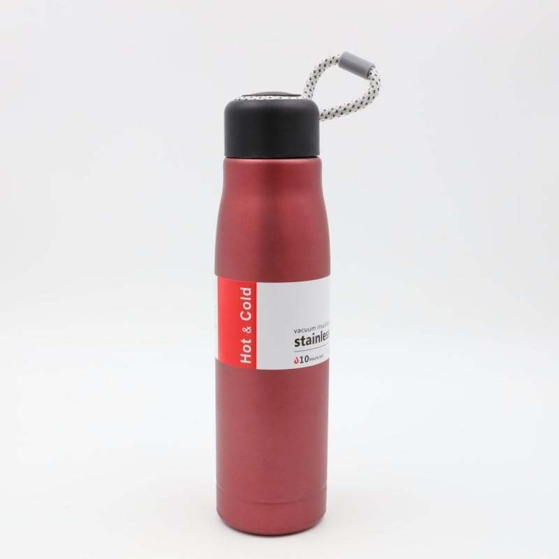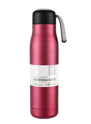 Generic - Stainless Steel Thermal Water Bottle, 550 ml, Red, Vacuum Insulation, 10 Hours Hot and 30 Hours Cold, with Hand Lanyard